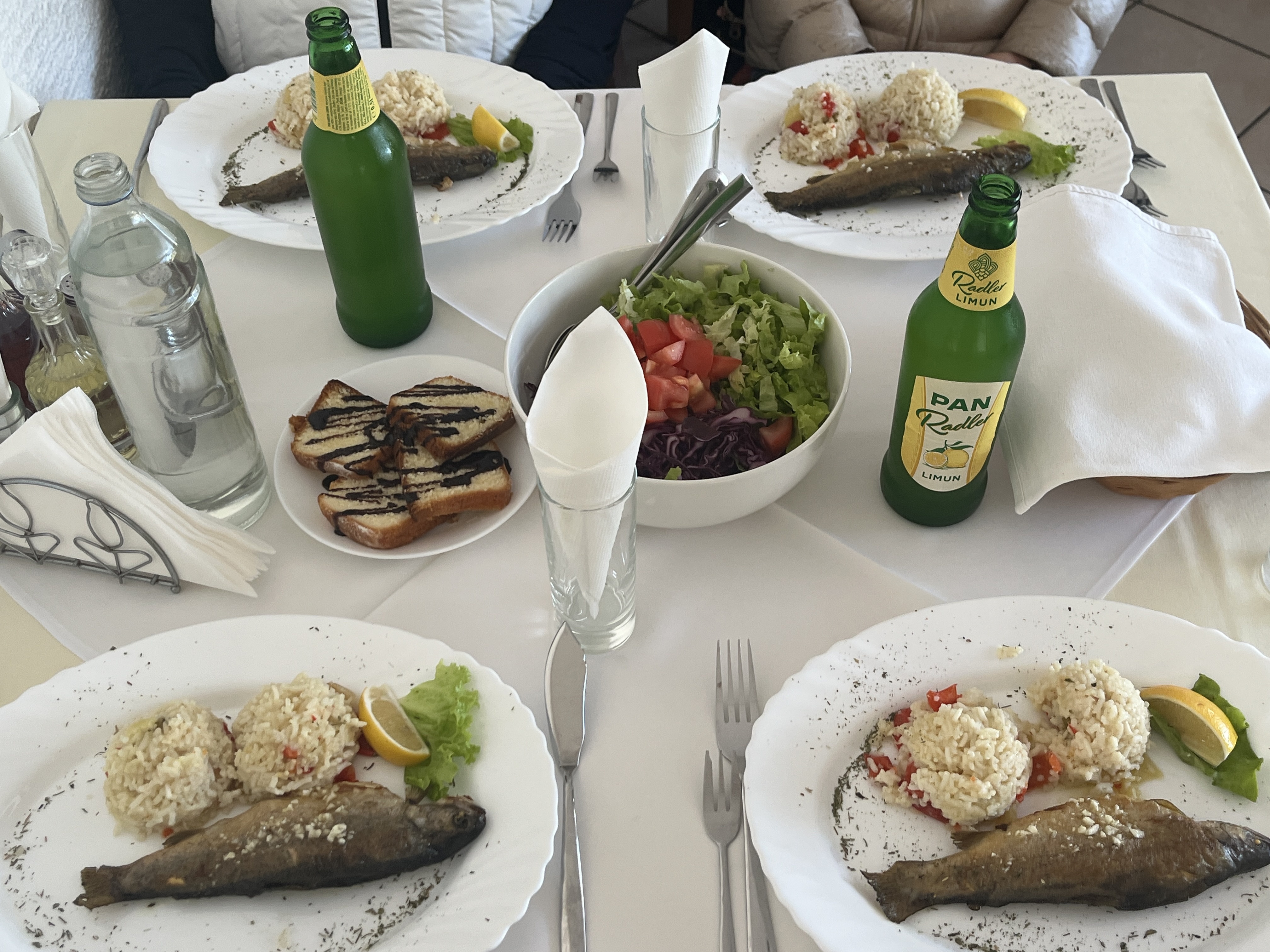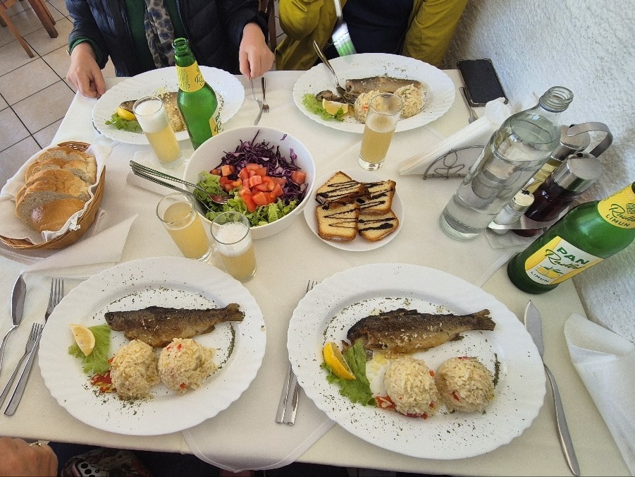 개인접시로 송어구이와 볶음?밥이 나왔고 레몬맥주를 가이드님이 사주셨고요.