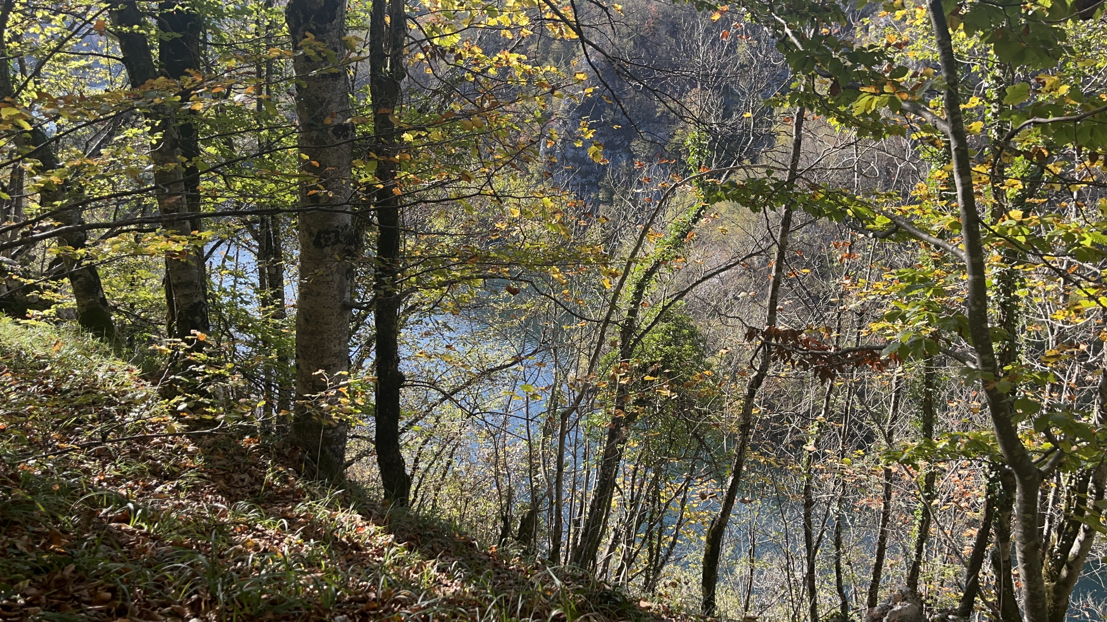 가장 짧은 코스로 회차하는 지점에서 호숫가로 내려왔어요.