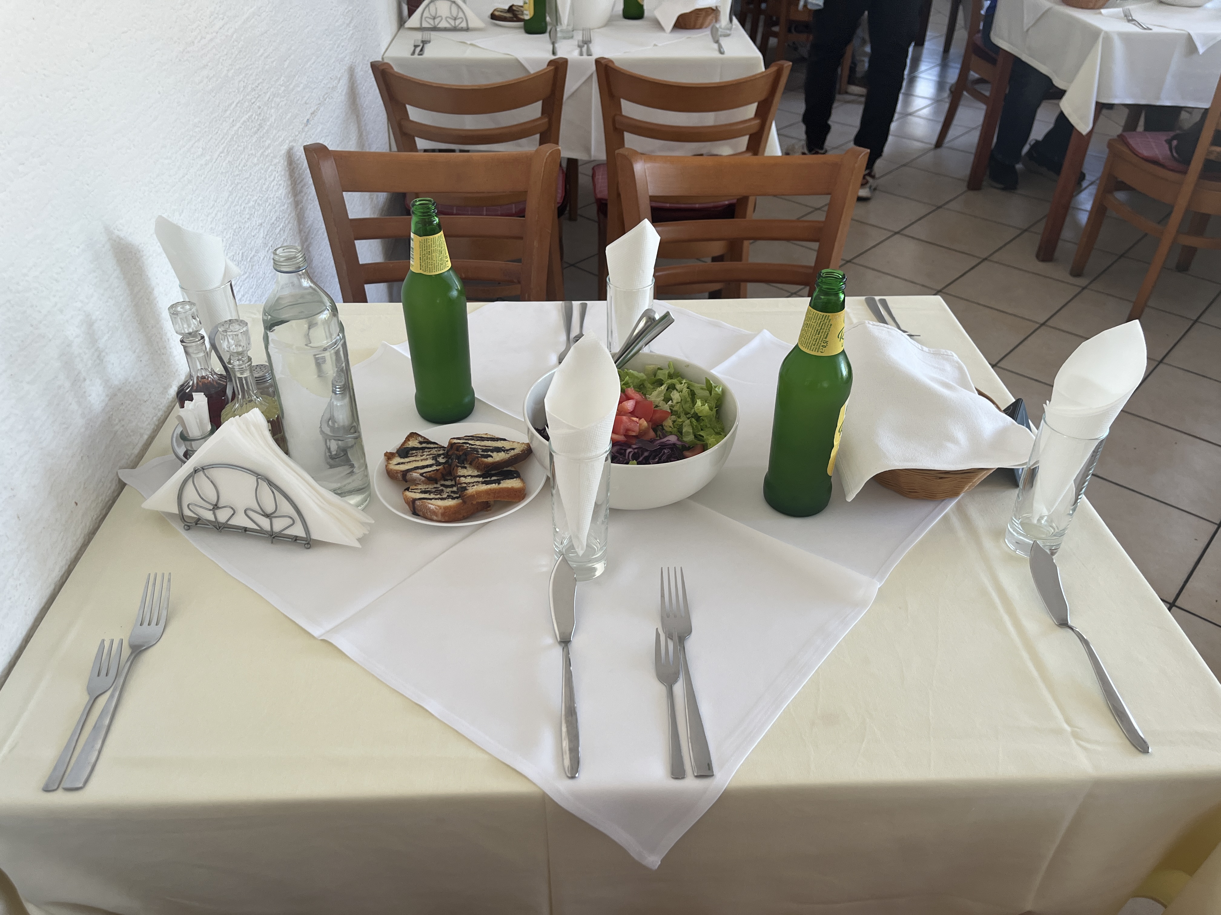 샐러드와 빵, 후식 파운드케익이 먼저 세팅이 되었고