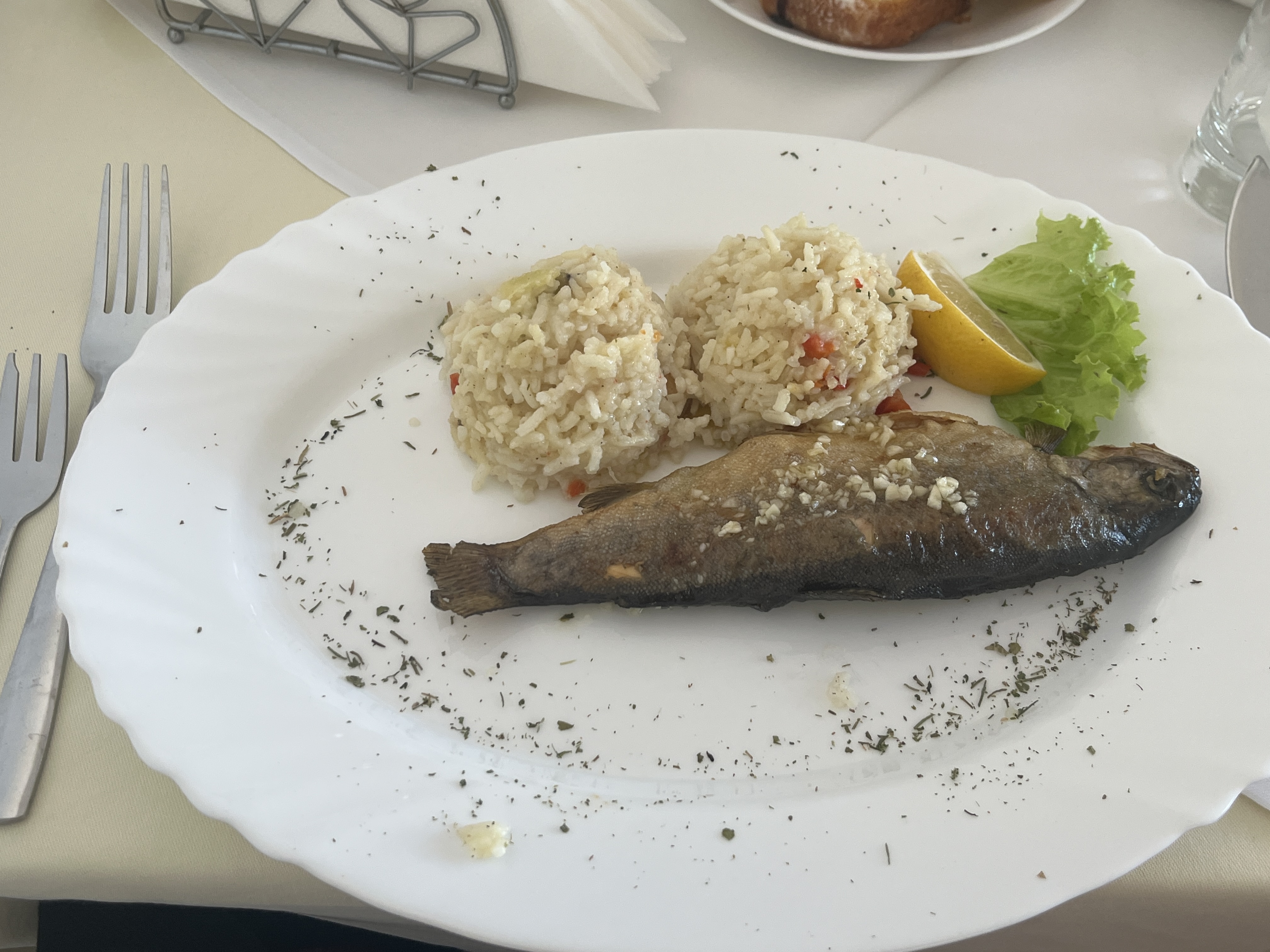 송어구이 맛은 담백한 흰살생선.. 뭔가 느끼한 스타일의 생선이었고