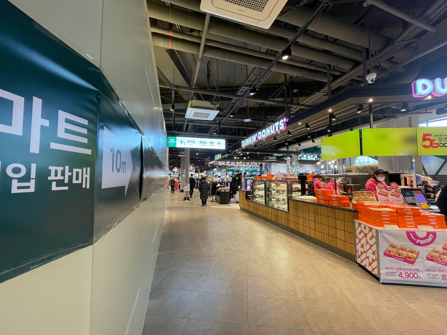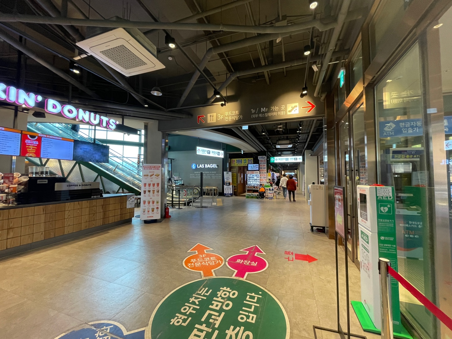 던킨도너츠가 있고 좌로는 마켓이 있고 우로는 에스컬레이터가 있습니다